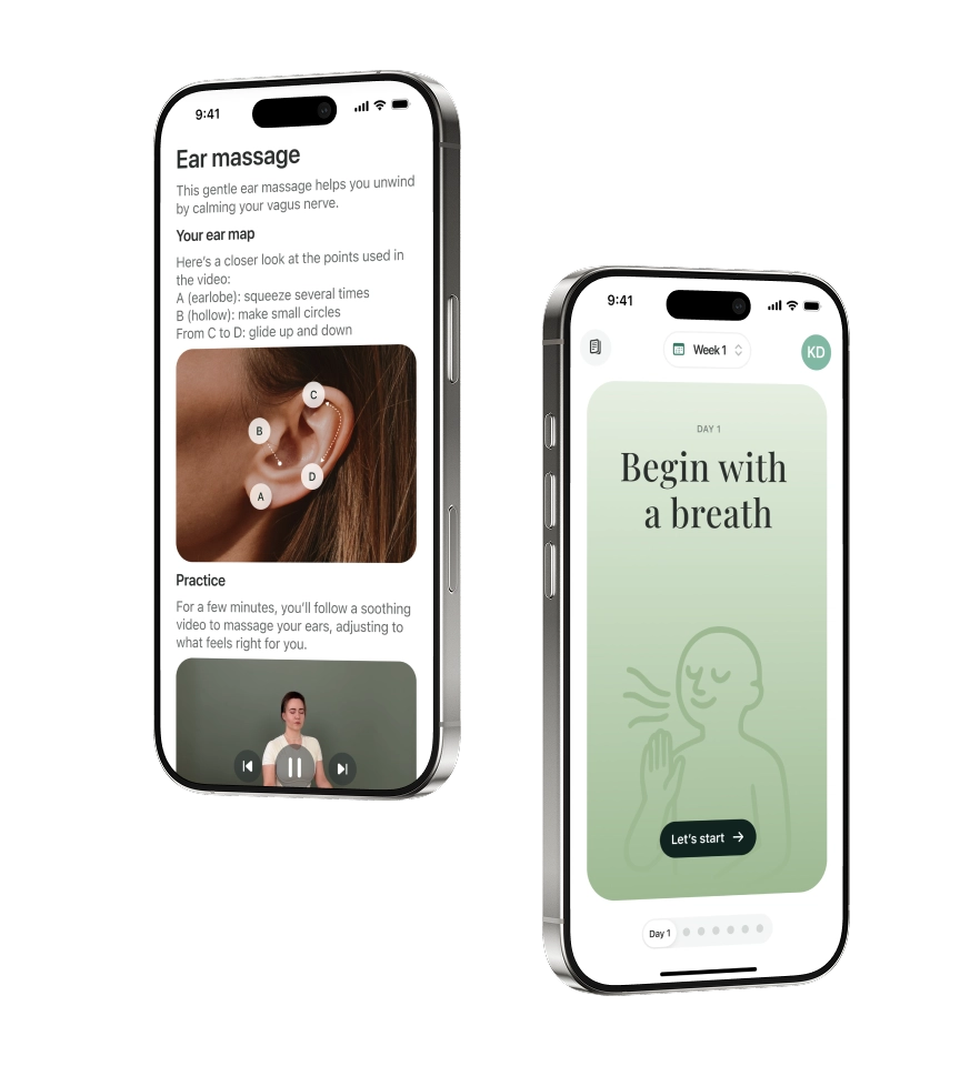 The Leaply Vagus Nerve Reset plan is a personalized program built on science-backed techniques designed to support nervous system regulation, ease stress and anxiety, restore energy, and reduce fatigue. The plan combines short daily practices with a structured progression, helping your body adapt and build lasting resilience.