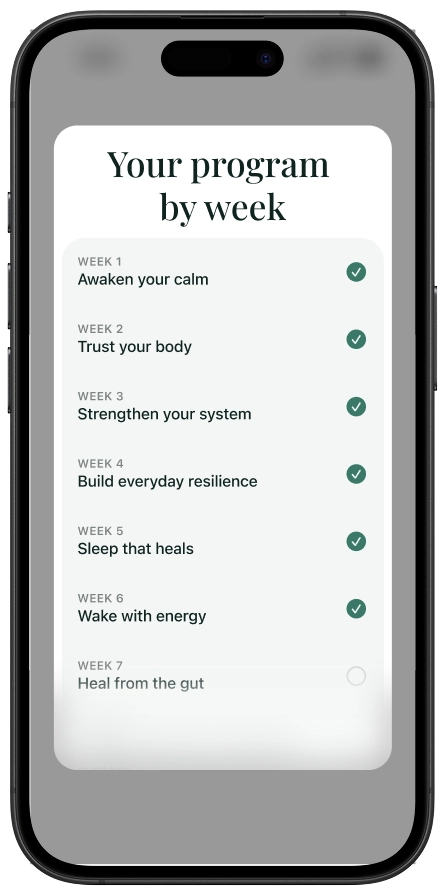 Everyone’s journey is a little different. Some people notice subtle changes within the first few weeks, such as feeling calmer, less anxious or sleeping more deeply. Over time, with regular practice, these shifts tend to build. The plan is designed to unfold gradually, giving your nervous system space to adapt and settle into a more balanced state, with ongoing support as you progress.