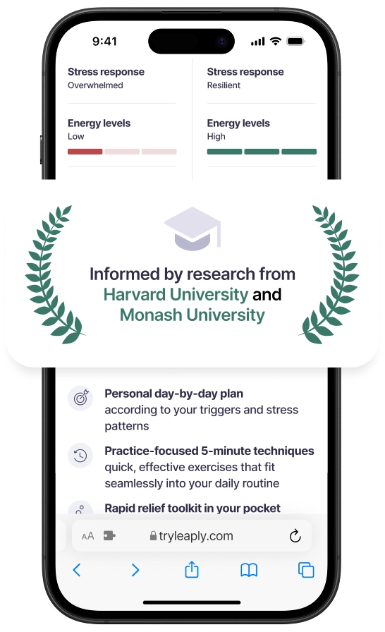 Create a Leaply account and access your personalized plan anytime, anywhere.
